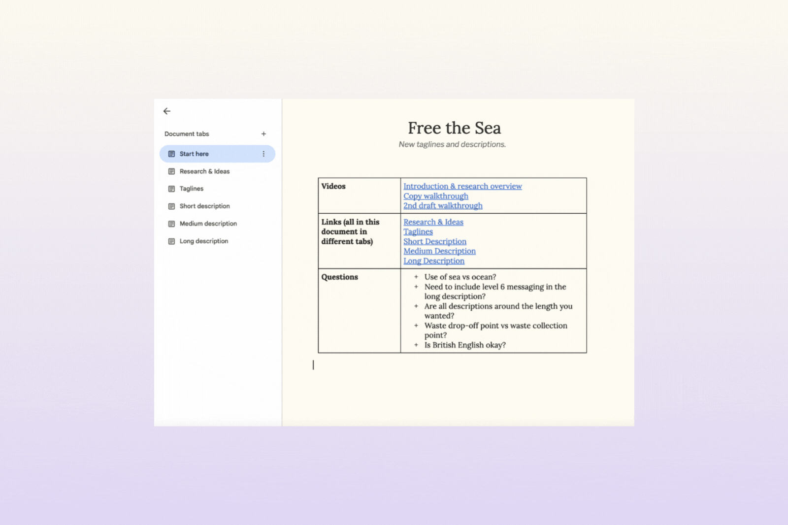 The marketing team at Free The Sea had already put a lot of thought into their strategy and the messaging, including a messaging hierarchy dictating which messages should be prioritised over others. But they were stuck on the final hurdle: